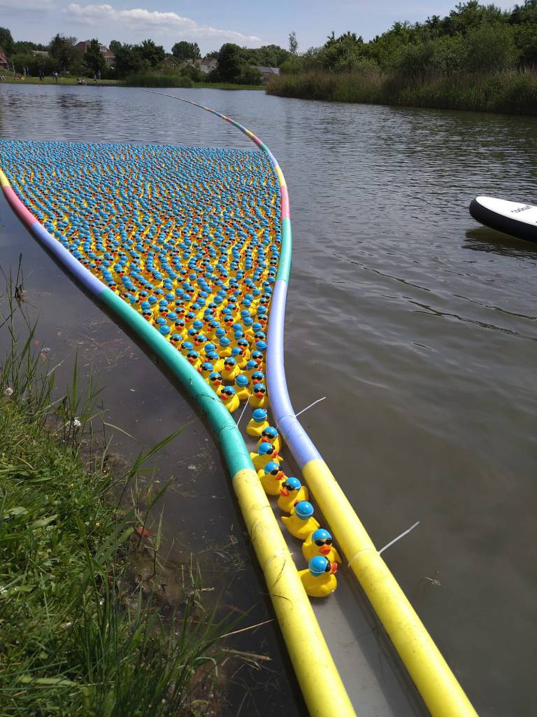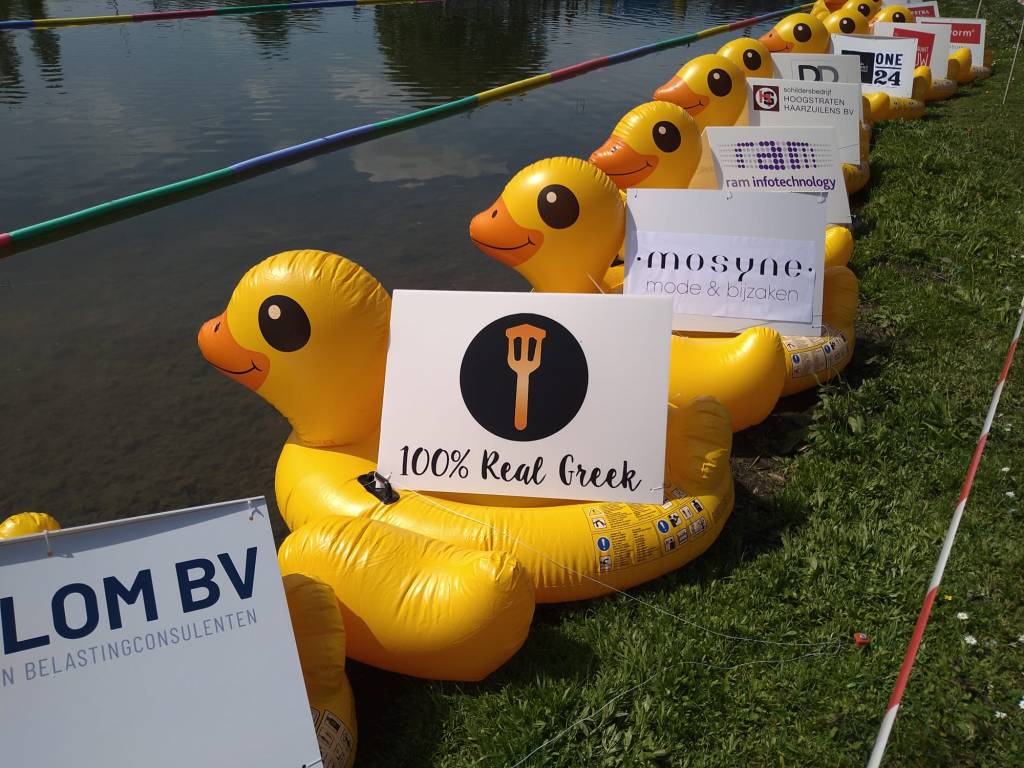 Onder bovenstaand motto verhuren wij de materialen die we voor de badeendjesrace gebruiken ook graag aan een ander. De opbrengst hiervan wordt via onze goede doelen stichting ook weer geschonken aan een goed doel.
